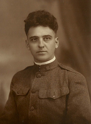George was born on Nov. 28, 1893 in Cambria County, PA. and later moved to Detroit, MI. This photo shows him wearing the collar disc of the Machine Gun Company, 339th Infantry Regiment, but records indicate that he was assigned to Company F of the 339th. (click here to enlarge photo). |
