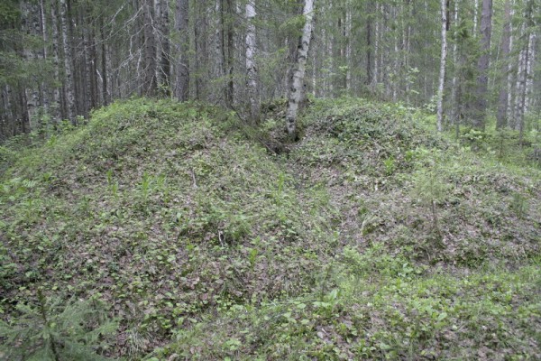 Mr. Suhanovsky writes: "The evidence provided by the remains of the many fortifications in the area of Verst 444 to 446 shows that they were the arena of bitter battles between the Armed Forces. Its engineering history is very rich. The fortifications which were built by the Americans are actually lost in the enormous mass of trenches, blockhouses and shelters that were later built by the Bolsheviks and white troops of the region. What you see today is the remainders of a solid military city which was enclosed by the entire kilometers of trenches! As we hike the 11.5 kilometers north from Emtsa, the fortifications gradually strengthen as we approach Kukhtoozersky. "