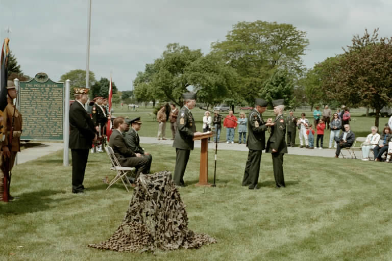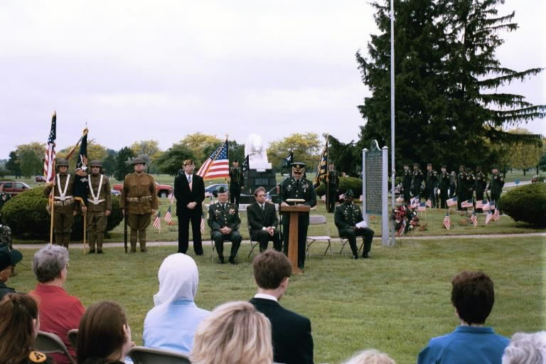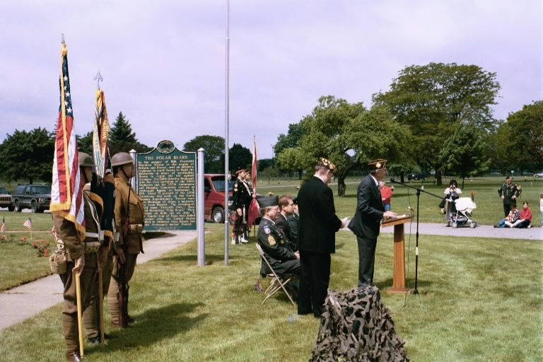 Oz Grobbel, President of the "Detroit's Own" Polar Bear Memorial Association, at the podium.