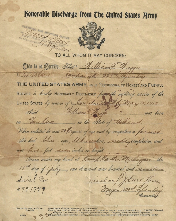 Michigan, where he was assigned to Company D, 339th Infantry Regiment,