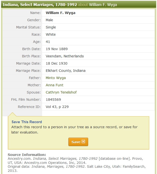 was born on November 19, 1889 in Veendam, Holland to Minto Wyga and